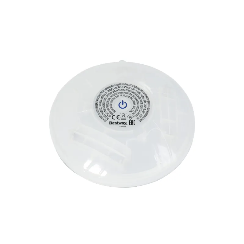 Avec le luminaire flottant à LED Bestway®, c’est toujours la fête dans votre piscine ! La lumière vous offre un magnifique spectacle avec ses 4 LED très lumineuses de 4 couleurs (jaune, rouge, bleu et vert) et ses 7 modes de clignotement. La portée de la lumière a un diamètre de 8'/2,43 m de large et 5'/1,52 m de profondeur. La lumière est facile à utiliser : il suffit d’appuyer sur le bouton situé sur le dessus de la lampe. Aucun câblage ni courant électrique à l’extérieur n’est nécessaire et vous n’aurez aucuns frais d’entretien ni de fonctionnement. La lumière fonctionne avec 3 piles AA (non fournies). La lumière LED offre un indice d’étanchéité IP68. Et pas d’inquiétude concernant les piles, la lumière s’éteint automatiquement au bout d’une heure lorsque vous ne l’utilisez pas. Un accessoire parfait pour vos aventures aquatiques !