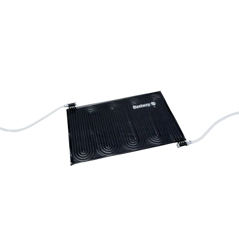 Le tapis de piscine alimenté par énergie solaire de Bestway® est une façon économique et écologique de chauffer l’eau de la piscine en s’aidant de l’énergie du soleil. Il est facile à installer avec les adaptateurs fournis avec, compatibles avec les tuyaux de 3,2 cm et 3,8 cm. Il est compatible avec une pompe de filtration ayant une capacité inférieure ou égale à 2 500 gal et un filtre à sable ayant une capacité inférieure ou égale à 2 000 gal. Il s’adapte à toutes les piscines hors sol. Le tapis utilise l’énergie solaire pour augmenter la température de l'eau de votre piscine d’environ 3 ~ 5 °C (5 ~ 9 °F), en fonction des conditions météorologiques. Offrant une zone chauffante de 1,46 m² (15,72 pi²), il peut être associé à d’autres tapis pour s’adapter à différentes tailles de piscines.