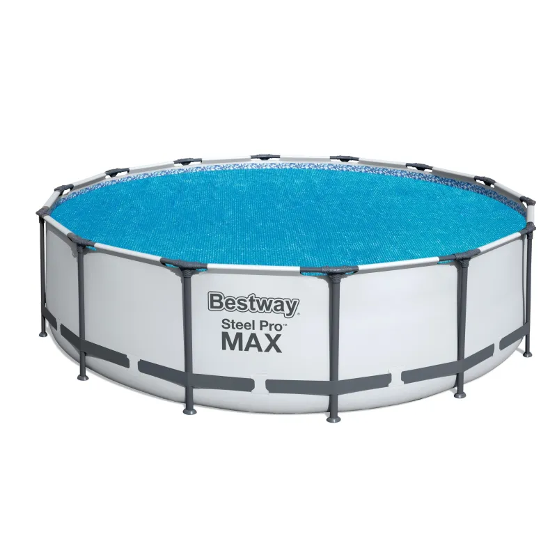Gardez votre piscine propre, immaculée et chauffée lorsqu’elle n’est pas utilisée avec la bâche solaire ronde Bestway. La bâche solaire spécialement conçue crée un effet de serre dans votre piscine. En flottant directement sur l’eau, la bâche capte les rayons du soleil pour réchauffer l’eau et conserver cette chaleur, tout en évitant aux débris de tomber dans le bassin. Les bâches de piscines hors sol sont un accessoire indispensable, car elles empêchent le développement des algues et réduisent la quantité de produits chimiques que vous devez utiliser pour conserver la qualité de l’eau. Cette bâche est parfaite pour les piscines Bestway à structure métallique ronde de 3,96 m ou de 4,27 m et les piscines gonflables à anneau rond de 4,57 m.