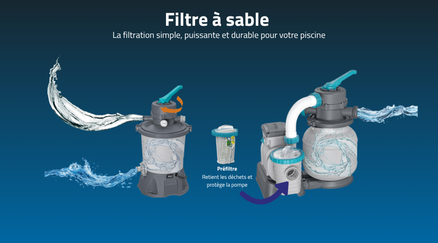 Découvrez nos filtres à sable Bestway disponibles en plusieurs débits.