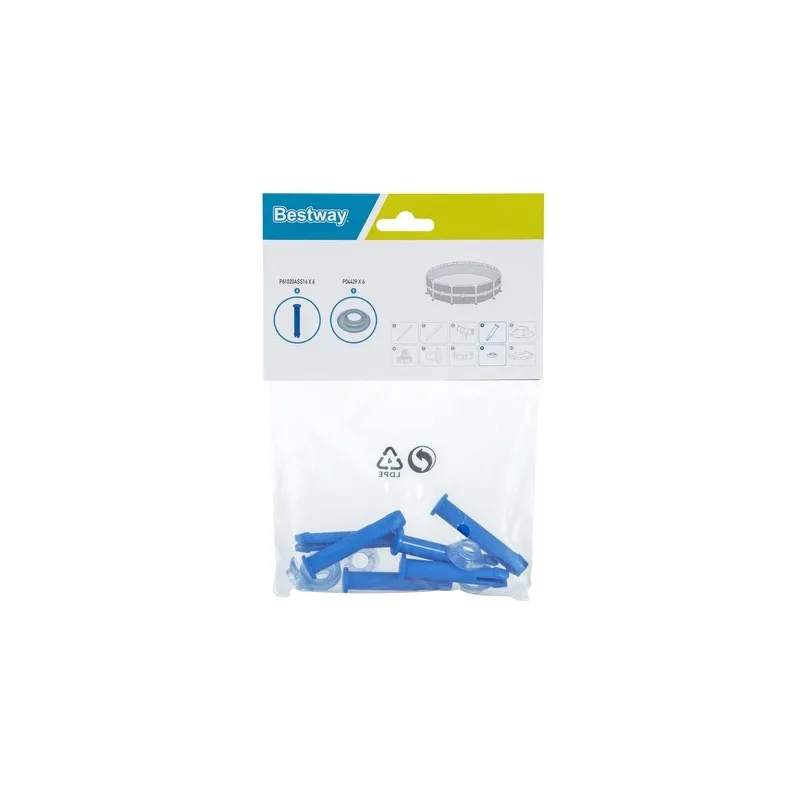 Kit de 6 goupilles de connexion + 6 joints (bleu) pour piscines Steel Pro Bestway 274 / 305 / 366 / 396 cm, rondes