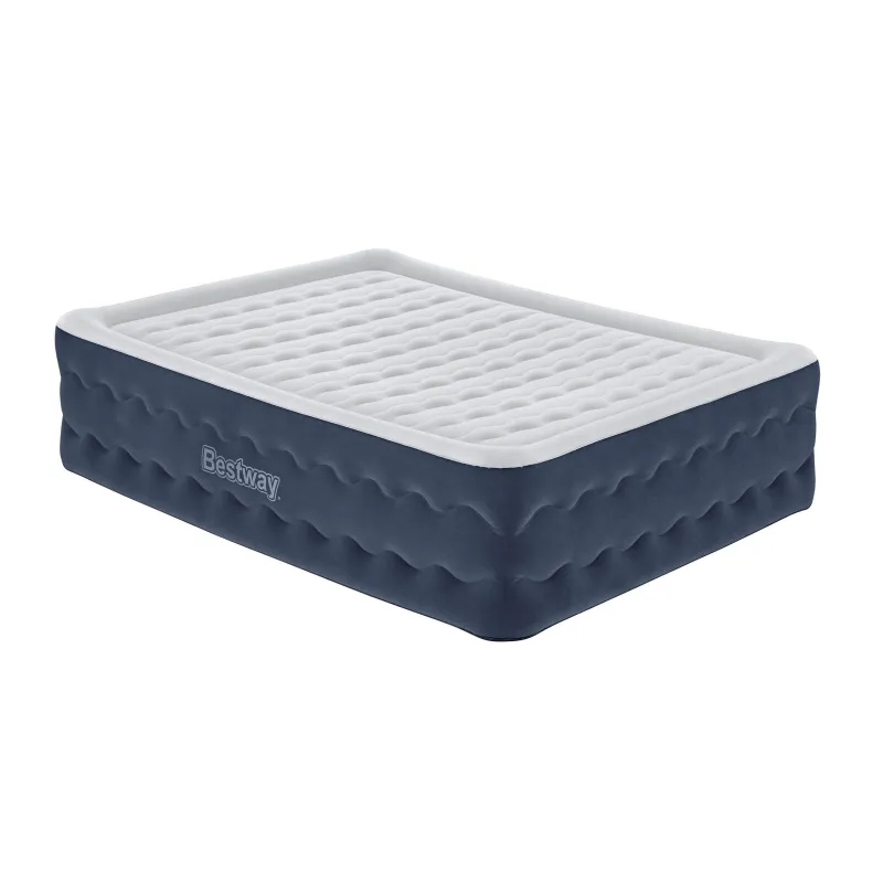 Réveillez-vous frais et dispos après une bonne nuit de sommeil sur le matelas gonflable en Tritech TruLeisure de Bestway ! Ce matelas 2 places Queen promet résistance, durabilité et confort tout au long de la nuit. Sa taille compacte et sa pompe intégrée en font un accessoire pratique, prêt à l’emploi dès que vous en avez besoin. De plus, avec le traitement antimicrobien Ultra-Fresh, votre lit sera protégé contre la prolifération des bactéries provoquant des odeurs et de la moisissure sur la surface de couchage.