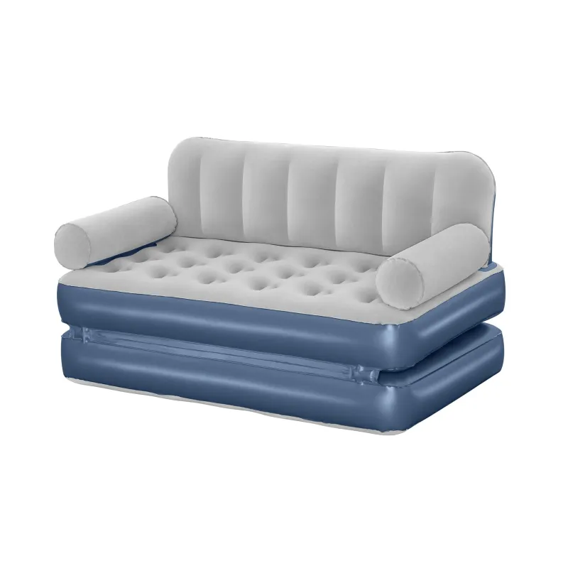 Le canapé gonflable Bestway® Multi-Max™ 3-en-1 avec pompe électrique intégrée a été créé pour être pratique. Profitez-en comme d’un canapé ou, très simplement, il se transforme en méridienne, ou vous pouvez l’ouvrir pour obtenir encore plus d’espace et l’utiliser comme un espace de détente. En mode canapé, le Multi-Max 3-en-1 dispose d’un dossier et d’accoudoirs confortables sur lesquels vous pouvez vous appuyer ou passer en mode détente pour regarder un film ou jouer à des jeux vidéo. Lorsque vos yeux deviennent lourds, le coussin inférieur du canapé se déplie pour révéler un lit confortable. Équipé d’une pompe intégrée, il suffit de brancher le canapé et de tourner la molette pour le gonfler/dégonfler en quelques minutes ! Le cordon d’alimentation se range commodément dans son propre compartiment et le canapé polyvalent se plie de manière compacte dans le sac fourni pour le rangement et les déplacements. Le matelas est approximativement de la taille d’un lit double et conçu pour accueillir deux dormeurs. De plus, la surface présente une texture douce, semblable à du velours, pour encore plus de confort. Parfait pour les voyages, un lit d’appoint dans la maison ou un canapé pour votre salle de jeux, profitez du confort du canapé gonflable Multi-Max 3-en-1 partout où vous allez.