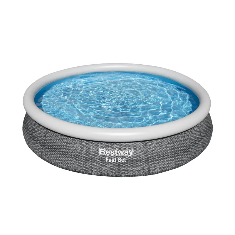 Facile et rapide à monter, la piscine Fast Set de Bestway vous permettra de vous prélasser au bord de votre nouvelle piscine en un rien de temps. Procédé d’installation ultrasimple Fill & Rise « remplissage-montage » : il suffit de choisir une surface plane, de gonfler l’anneau supérieur et la piscine se lèvera au fur et à mesure qu’elle se remplira. Le liner est fabriqué en DuraPlus, un matériau extrêmement résistant fait de 3 épaisseurs renforcées, 85 % plus résistant à la perforation que le PVC. Le décor imprimé rotin naturel du liner apporte une touche à la fois classique et stylée à votre jardin. Lorsque l’été est terminé, vous pouvez ranger la piscine rapidement et simplement. Videz facilement l’eau grâce à la valve de drainage à flux contrôlé, avant de plier la piscine pour la ranger pendant l’hiver. Elle est idéale pour les familles recherchant une piscine rapide et facile à monter dans leur jardin. Les enfants vont adorer passer leurs journées d’été à s’éclabousser et à jouer dans l’eau, et les parents pourront également profiter d’une baignade agréable et relaxante. L’été n’est pas vraiment l’été sans la piscine Fast Set de Bestway !