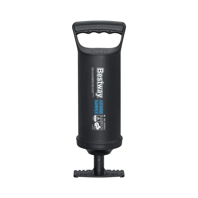 La pompe à air manuelle Bestway® Air Hammer™ 1850 ML gonfle les bouées, les matelas gonflables, les canots pneumatiques, les jouets et autres structures gonflables. Conçue pour fournir un débit d’air maximal, cette pompe a un volume de course de 1,85 L/cycle et dispose d’une grande chambre à air pour un gonflage rapide. Elle délivre un flux d’air continu à la fois en mouvement ascendant et descendant, ce qui vous permet de gonfler plus rapidement vos objets qu'avec des pompes à simple action. C’est la pompe idéale si vous n’avez pas accès à l’électricité et si vous devez gonfler vos objets lors de vos déplacements. De plus, trois adaptateurs de valve universels sont inclus pour s’adapter à presque toutes les valves de gonflage, de sorte que vous pouvez gonfler une de nombreux types d’objets différents avec la même pompe Bestway Air Hammer !