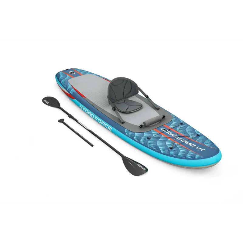 Donnez une nouvelle dimension à votre prochaine aventure nautique avec le paddle SUP et kayak gonflable 2-en-1 Hydro Force Oceana 3,05 m. Cette planche polyvalente dédiée aux loisirs bénéficie d’une forme large pour assurer un meilleur équilibre, quelles que soient les conditions de navigation. Et grâce à sa fonction convertible, vous pourrez pagayer où bon vous semble. Structure résistante : L’Oceana 2-en-1 SUP est fabriqué en FortiFiber drop stitch, un matériau composé de milliers de fils internes qui relient la partie supérieure et inférieure de la structure de la planche. Il offre une résistance et une rigidité exceptionnelles, similaires à une planche à parois rigides : la planche de SUP gonflable garde ainsi toute sa légèreté et se révèle très facile à transporter et à ranger. Caractéristiques : La poignée de pont pratique vous permet de transporter facilement le SUP vers et depuis votre destination et le cordon élastique du SUP permet de ranger en toute sécurité vos objets personnels lorsque vous êtes sur l’eau. La planche est également équipée d’un pad de traction antidérapant, conçu pour vous aider à rester en équilibre et bien stable pendant que vous pagayez. De plus, le leash spirale de cheville à libération rapide retient votre planche et peut être retiré à l’aide de la languette d’extraction facile à utiliser. Montage et stockage faciles : Avant de sauter sur votre planche, il vous suffit de la gonfler grâce à la pompe à main incluse, et vous voilà prêt à passer une fantastique journée sur l’eau ! Ce kit comprend une pagaie réglable qui s’adapte à la taille de chaque utilisateur et se convertit en une pagaie à deux pelles lorsque la planche est utilisée en mode kayak. Et comme ce paddle SUP est gonflable, vous pouvez l’emmener partout avec vous, que ce soit sur un lac, une rivière ou en mer. Lorsque vous avez terminé, la valve vous permet de dégonfler la planche en un rien de temps. Il suffit de rouler l’Oceana SUP, de le ranger dans le sac de voyage inclus et de partir.